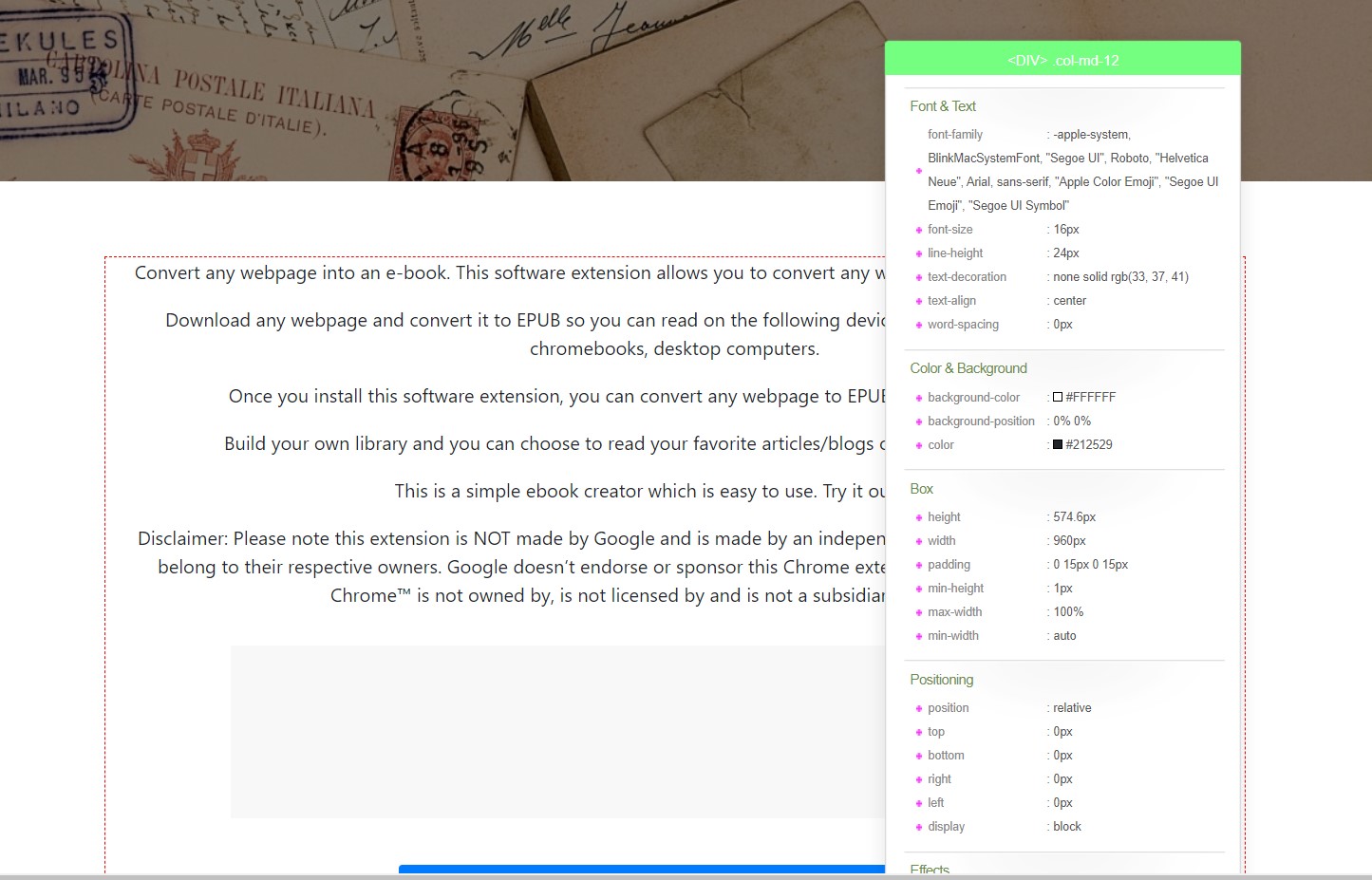 Once you have installed our extension, you can choose to view the CSS on any web page. Simply click on the extension icon whenever you want to view a CSS element within a webpage.